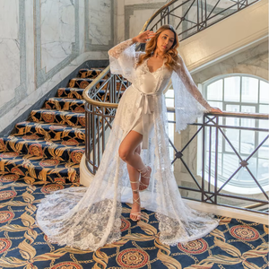 Длинный элегантный сексуальный кружевной халат для невесты на свадьбу или вечеринку (8289)