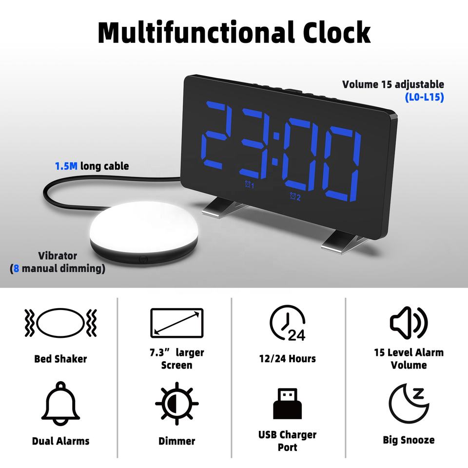 Сверхгромкий вибрационный будильник для глубокоспящих и слабослышащих с ночником и функцией встряхивания кровати